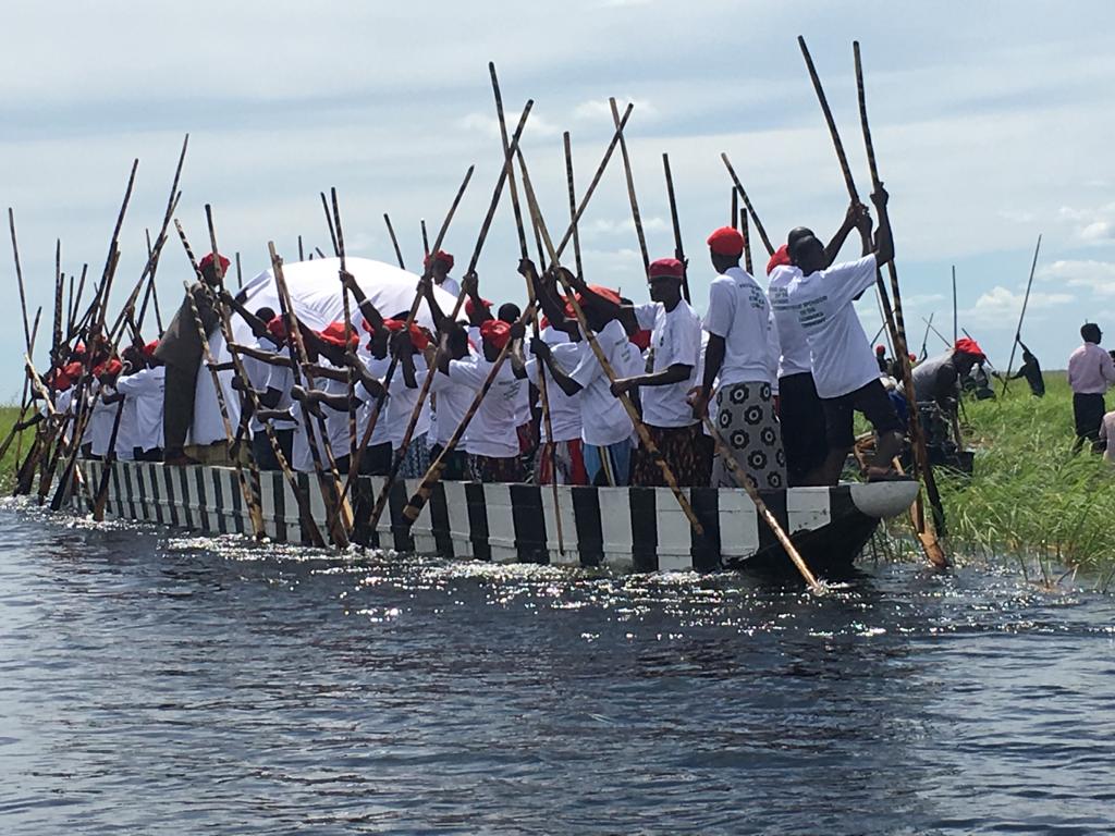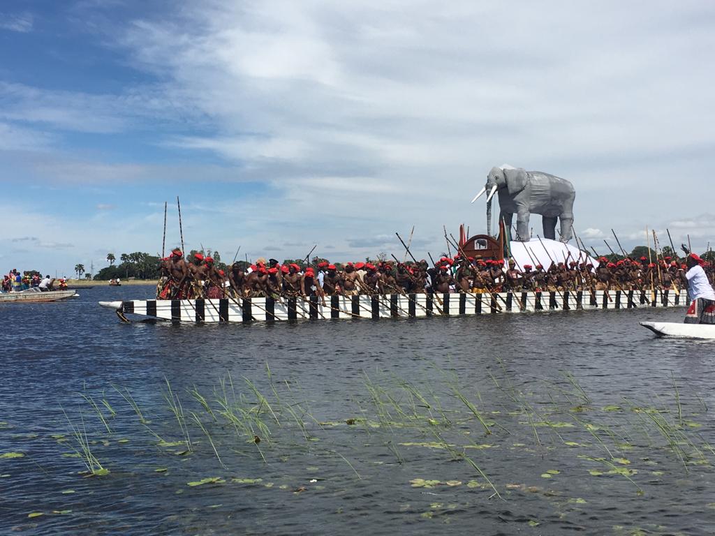 The Nalikwanda is the Litunga’s boat, it carries the king’s personal belongings, his crew of musicians, paddlers…It can be easily recognised thanks to a large statue of an elephant symbolizing the Lozi power.